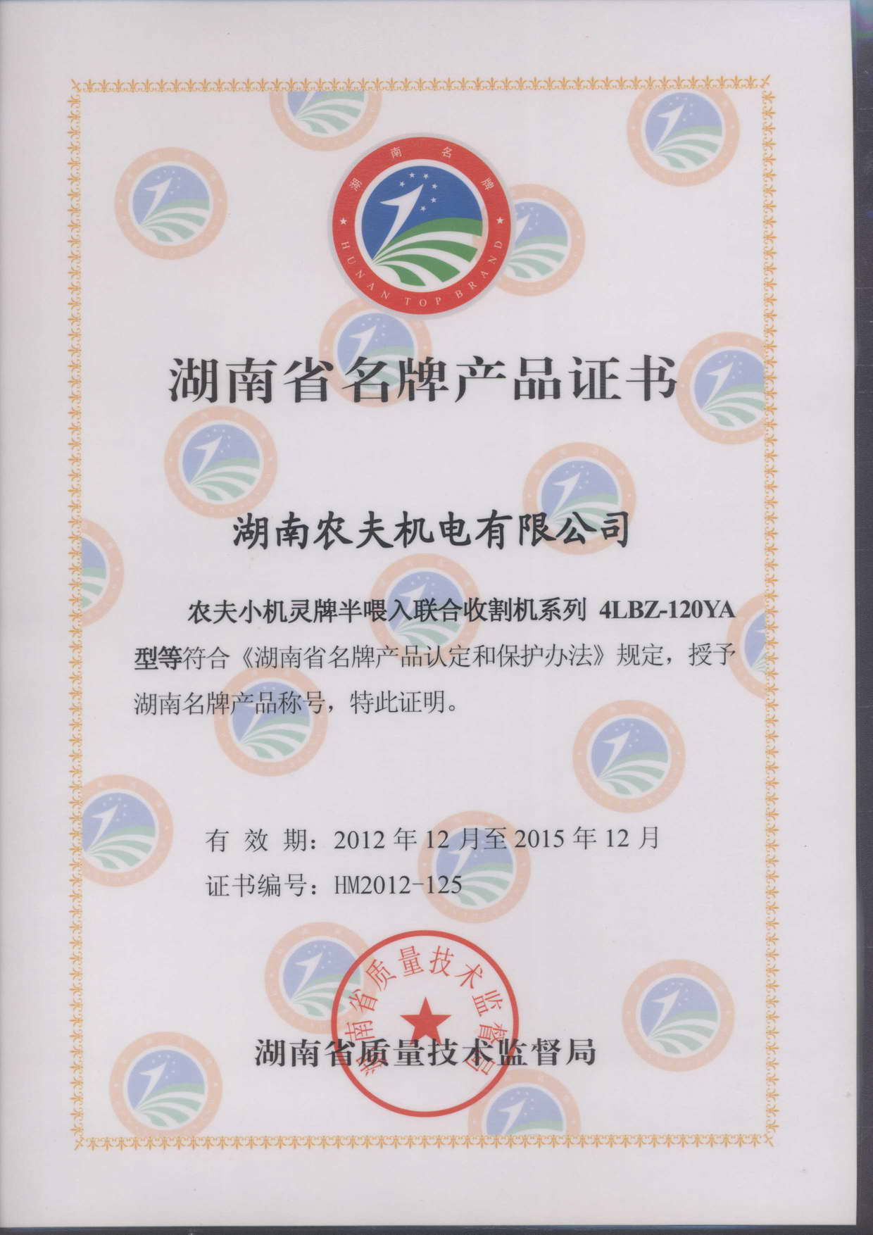 120YA推广鉴定证书